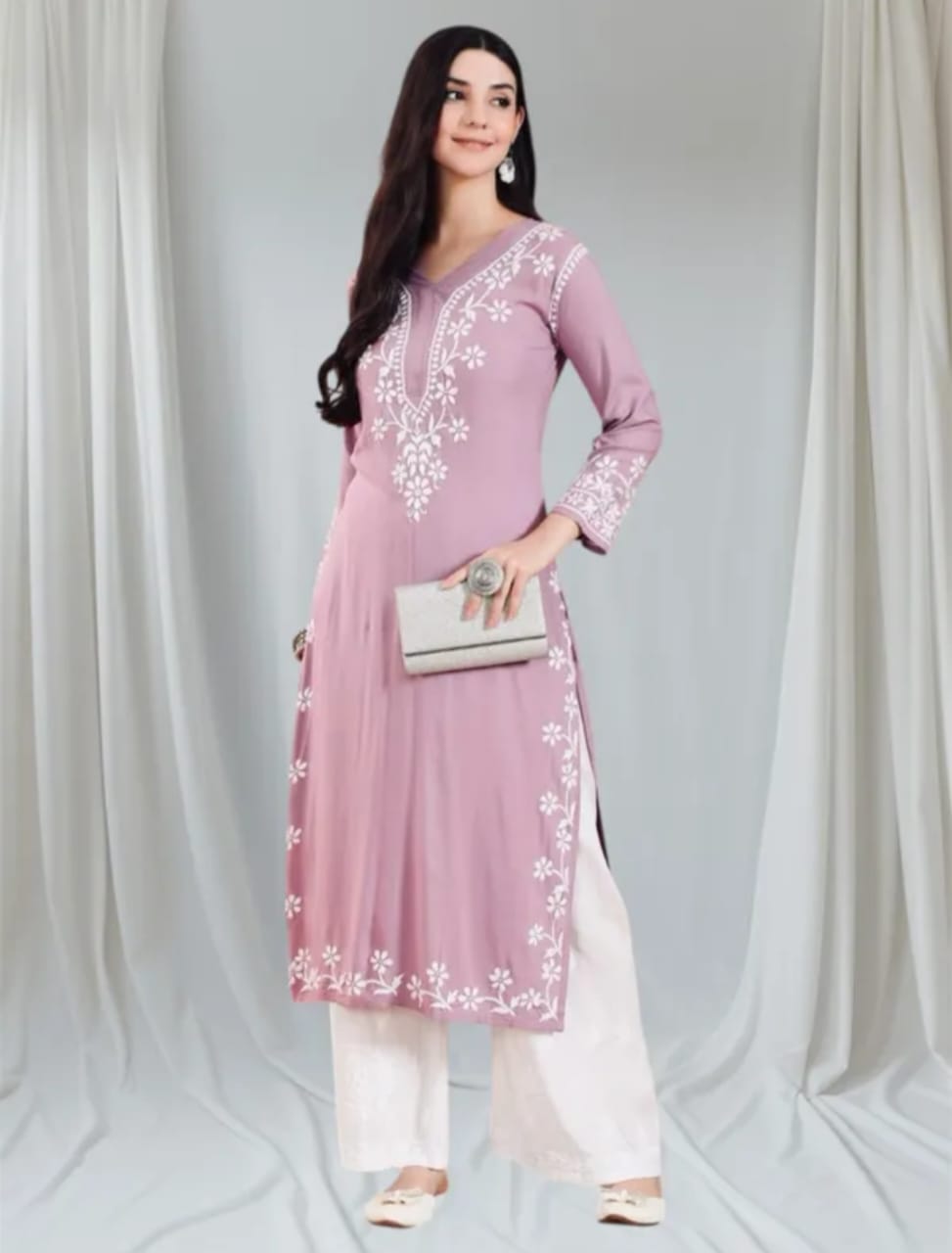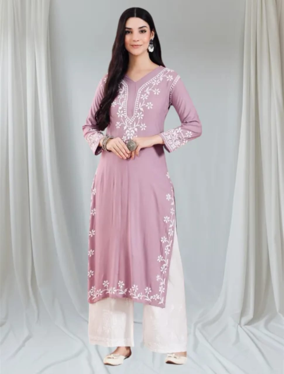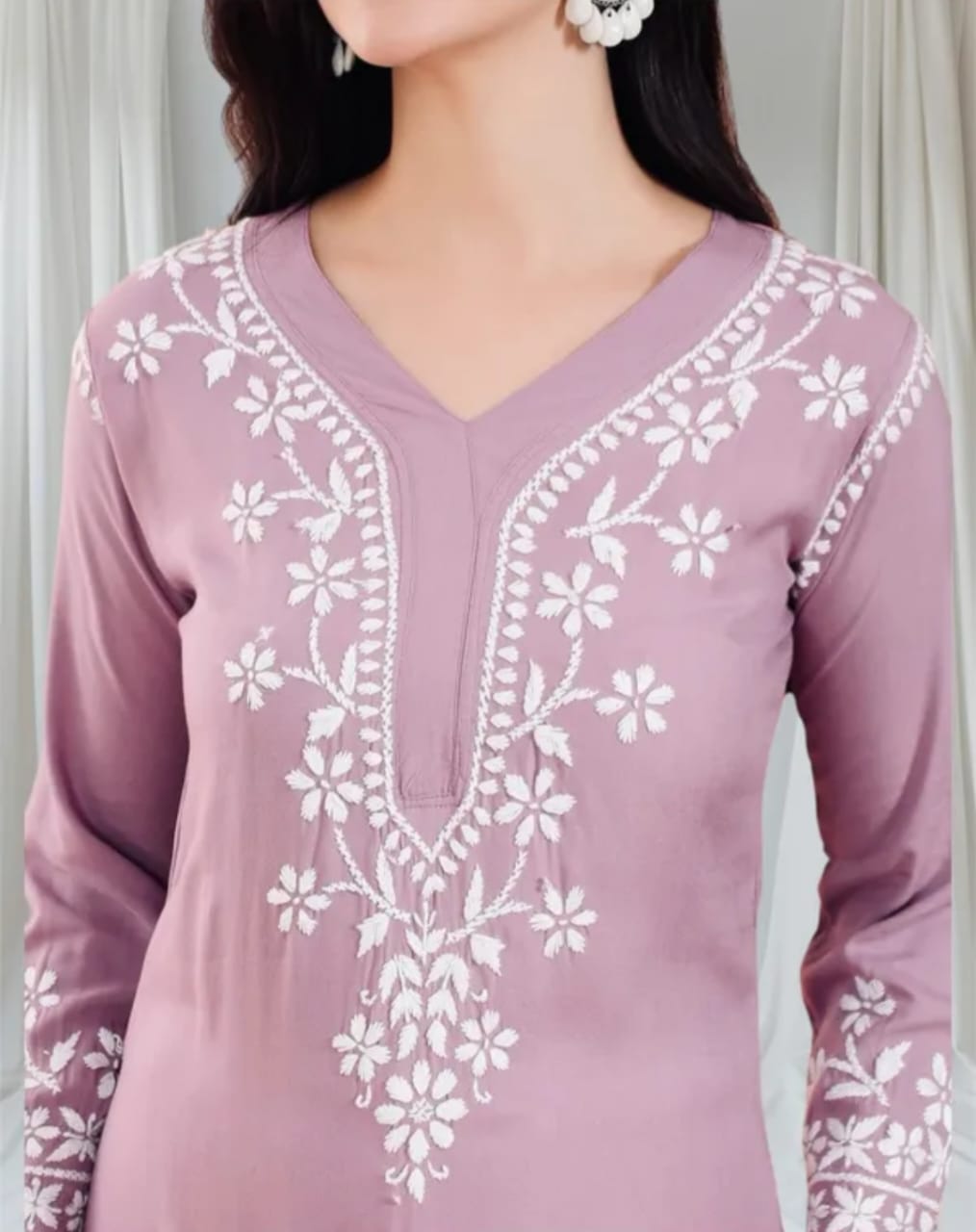 Delineation: Purchase this elegant and comfortable Chikan kurta online from Arham, is ideal for any fashionista. It has coloured rich and attractive Chikan embroidery. Buy this classic kurta for any occasion, any festival and any party celebrations.