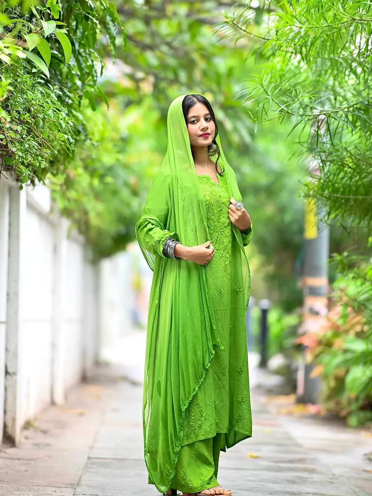 Trivia: The chikankari work was initially done on white yarn known as tanzeb. Though embroidery has evolved with time it still remains delicate, intricate and graceful. The chikan garment goes through the production process anywhere between one to six months. The fabric is cut in the desired shape, followed by pre-embroidery work to get the desired shape of the embroidery. After printing the design on the semi-stitched garment the embroidery is begun. This is followed by a quality check. The garment is washed in a bhatti, dried and finished! There are in all 36 stitching techniques involved in Chikankari.