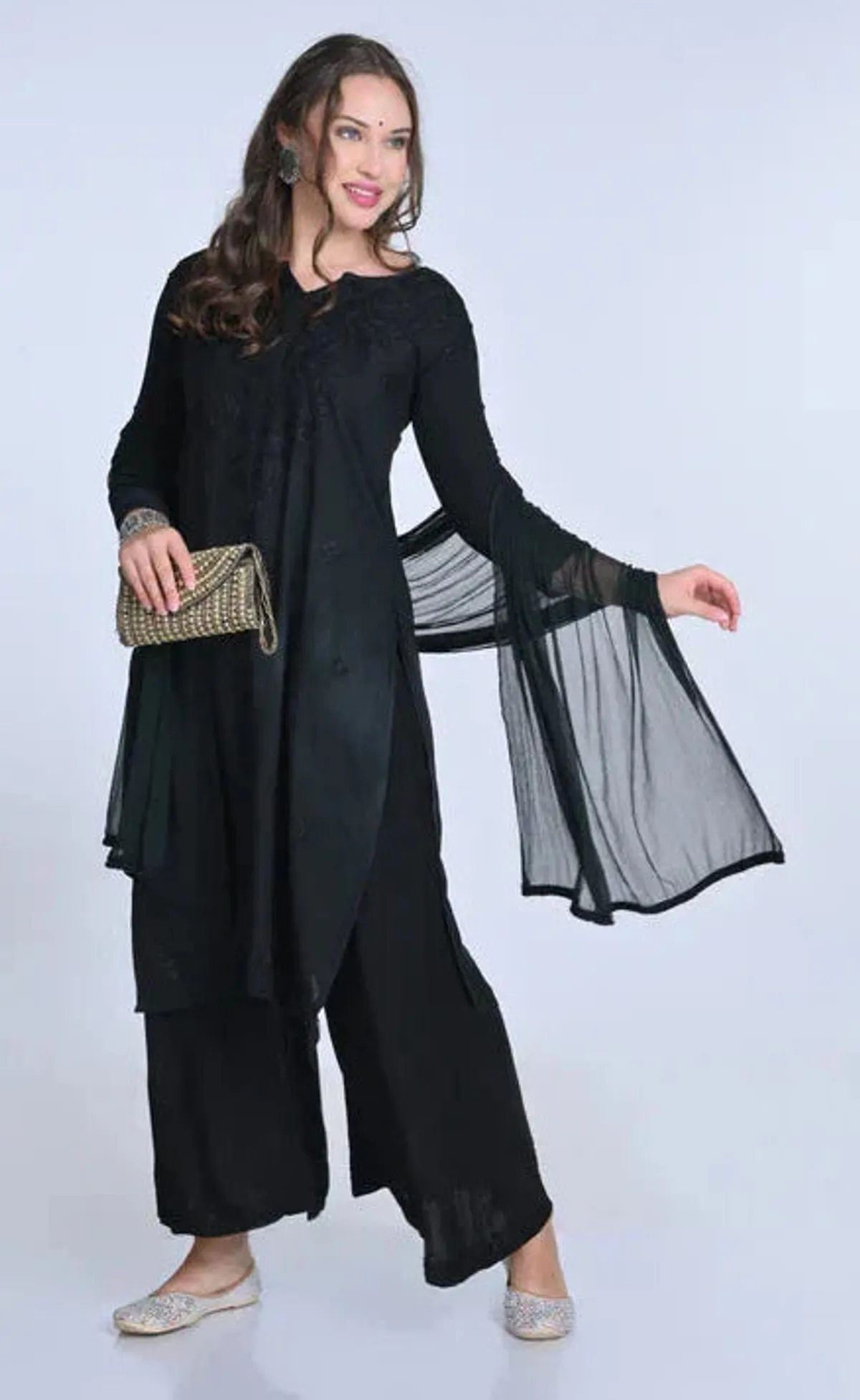 Trivia: The chikankari work was initially done on white yarn known as tanzeb. Though embroidery has evolved with time it still remains delicate, intricate and graceful. The chikan garment goes through the production process anywhere between one to six months. The fabric is cut in the desired shape, followed by pre-embroidery work to get the desired shape of the embroidery. After printing the design on the semi-stitched garment the embroidery is begun. This is followed by a quality check. The garment is washed in a bhatti, dried and finished! There are in all 36 stitching techniques involved in Chikankari.